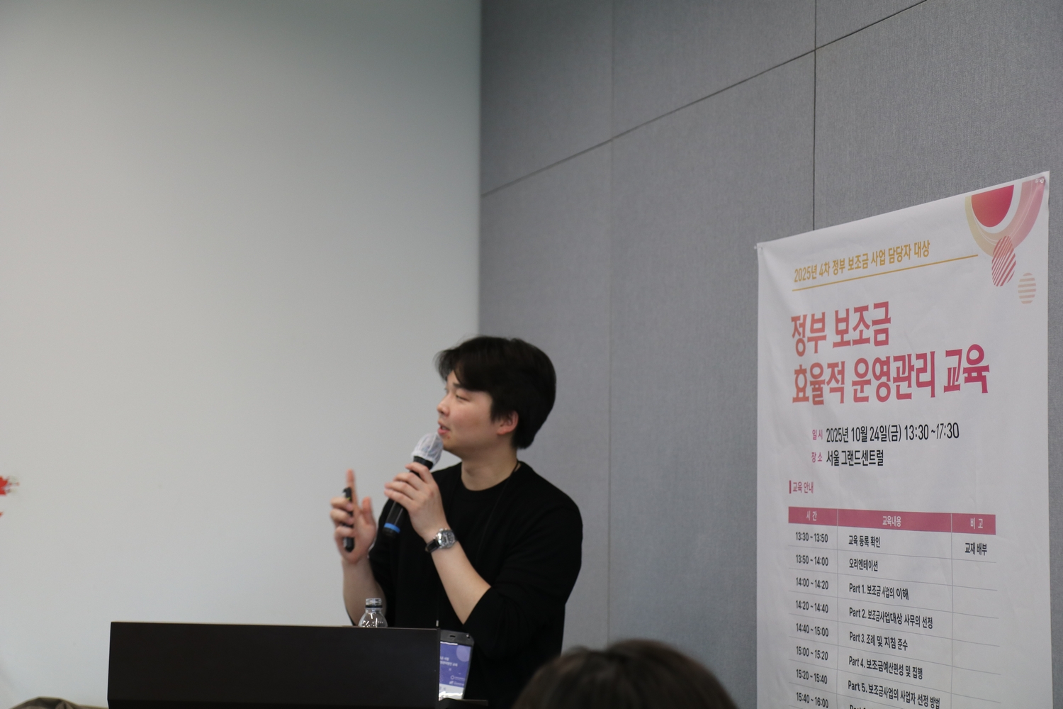 공공관리연구원은 지난 10월 24일, 서울역 인근 그랜드센트럴에서 전국 보조금 담당 공무원 및 실무자를 대상으로 ‘2025-4차 정부 보조금 사업 효율적 운영관리 방안 교육’을 개최했다. 이번 교육은 보조금 제도의 투명성과 효율성 제고를 목적으로 마련되었으며, 공공관리연구원 박세호 연구원이 강의를 맡았다.