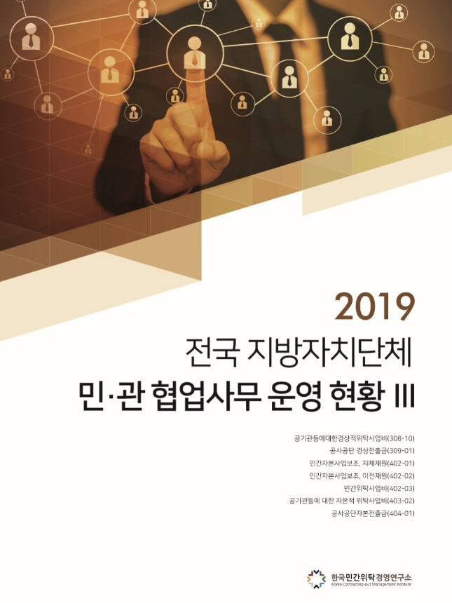 본 현황분석은 한국민간위탁경영연구소의 세번째 전국단위 민·관 협업사무 운영현황 통계조사를 한 것으로서 미흡한 부분이 다소 존재합니다. 하지만 전국 민·관 협업 서비스 발전을 위한 기초 연구자료로써 중요한 역할을 할 수 있을 것을 기대합니다. 도움을 주신 전국 민·관 협업사무 담당 공무원분들께 감사드립니다.