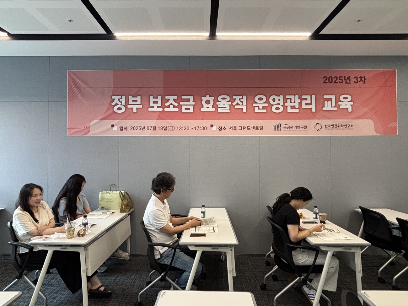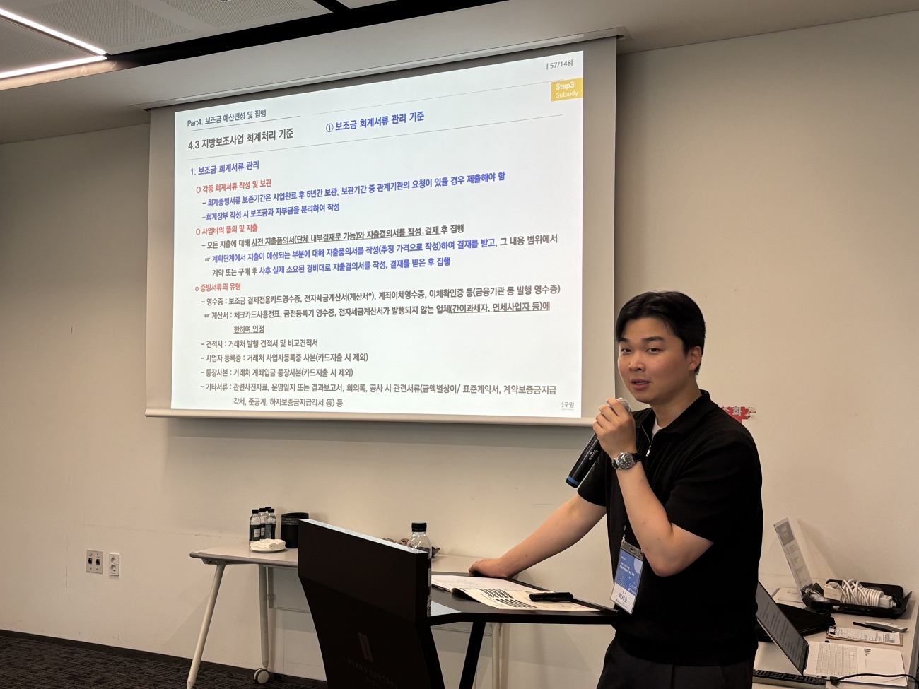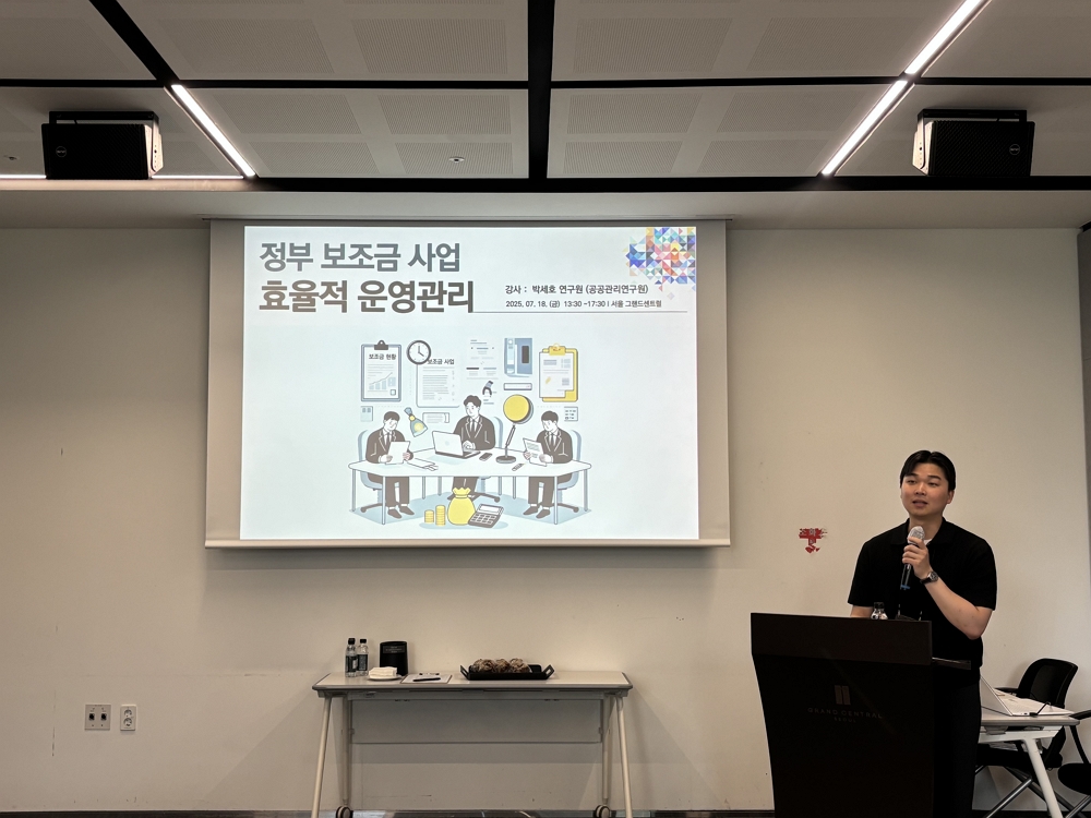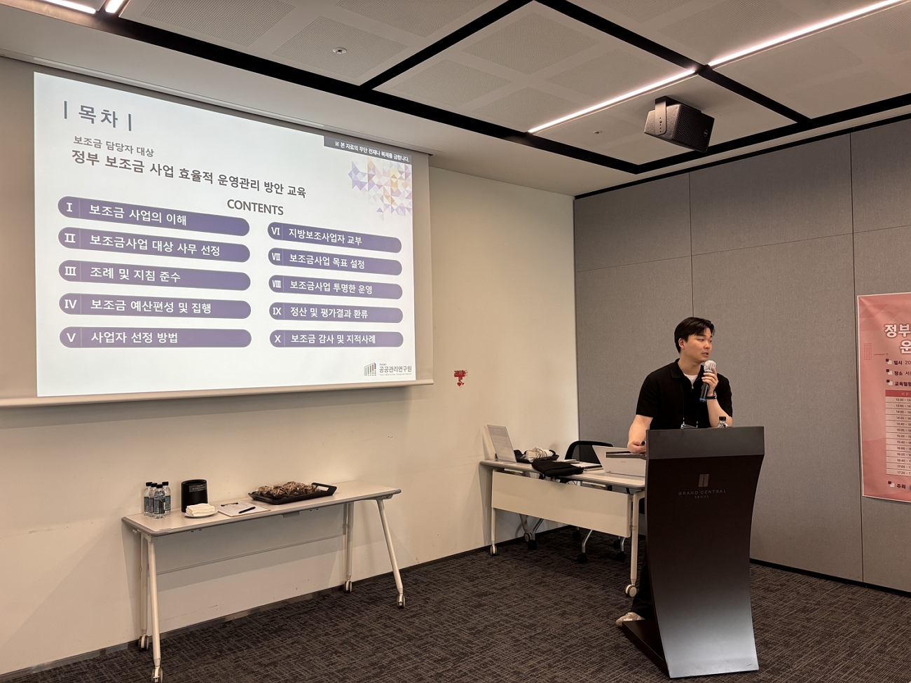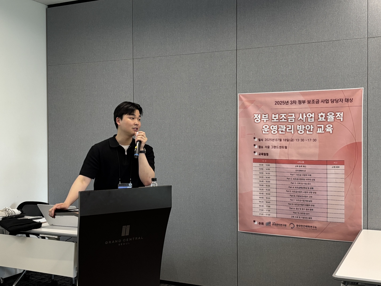 공공관리연구원은 지난 7월 18일, 전국 지자체 및 공공기관의 보조금 업무 담당자들을 대상으로 ‘2025-3차 정부 보조금 사업 효율적 운영관리 방안 교육’을 실시했다. 이번 교육은 보조금 제도의 투명성과 효율성 강화를 목적으로 마련되었으며, 공공관리연구원 박세호 연구원이 강의를 맡았다.
