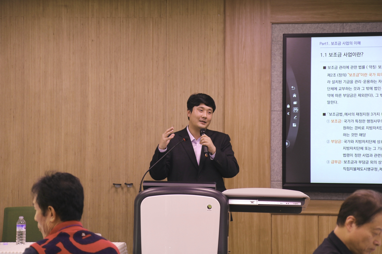 강영덕 팀장은 「보조금 관리에 관한 법률」과 「지방보조금법」을 중심으로, 예산편성과 집행, 정산에 이르는 전 과정을 체계적으로 설명했다. 특히 △사업계획의 명확성 △보조금의 목적 외 사용 금지 △교부조건 설정 및 변경 승인 절차 △자부담 관리의 중요성 등을 강조하며, 보조금 집행 단계별로 실무자가 유의해야 할 핵심 사항을 짚어주었다. 또한, 최근 개정된 지침에 따라 ‘보조사업자 정보공시’ 및 ‘정산보고서 검증제도’가 강화된 점을 안내하며, 현장 적용 시 주의해야 할 행정 절차를 구체적으로 제시했다.