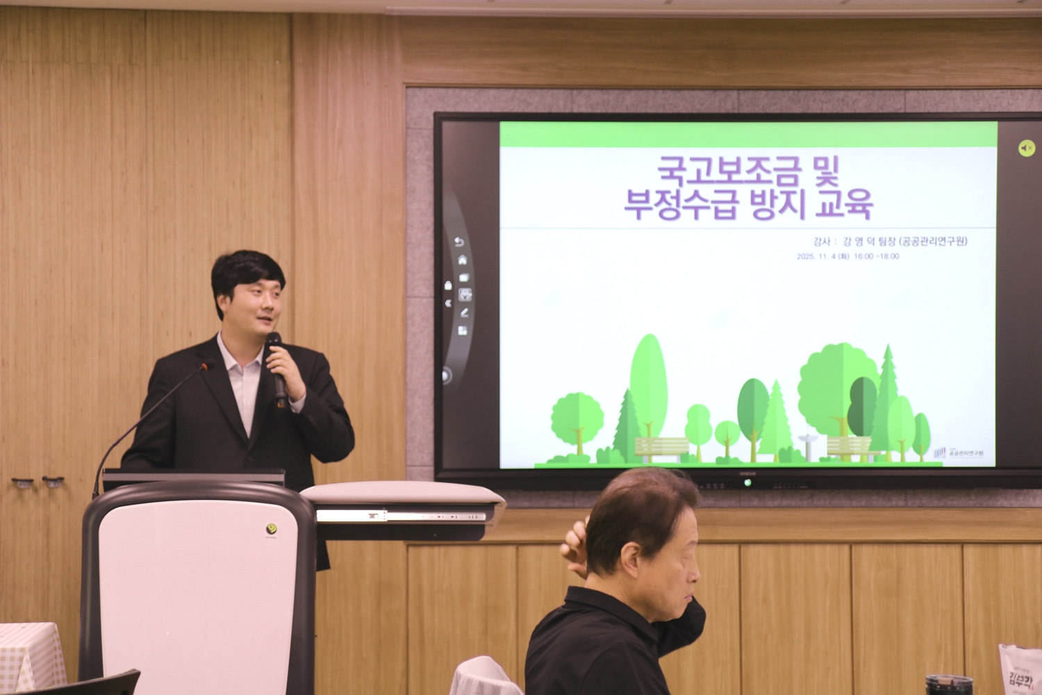 공공관리연구원 강영덕 연구팀장은 11월 4일, 국립생태원 직원을 대상으로 ‘2025 국고보조금 및 부정수급 방지 교육’을 진행했다. 이번 교육은 공공기관의 보조금 집행 투명성을 높이고 부정수급 방지 역량을 강화하기 위해 마련되었으며, 법령 이해부터 감사사례 분석, 실무 대응방안까지 폭넓은 내용을 다뤘다.