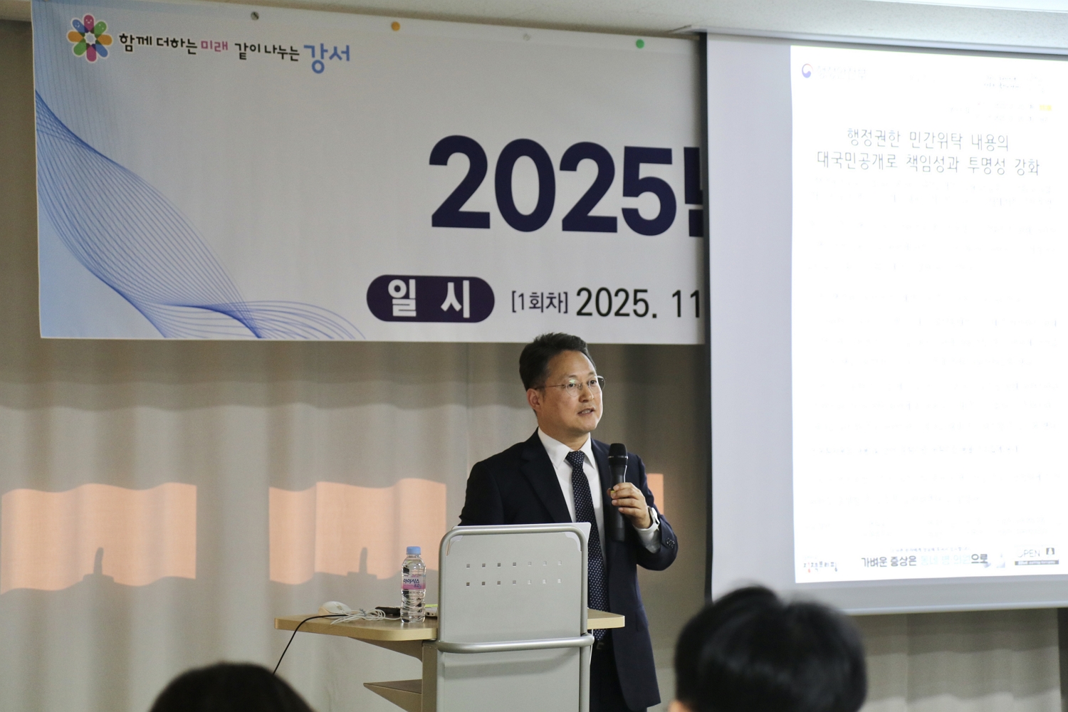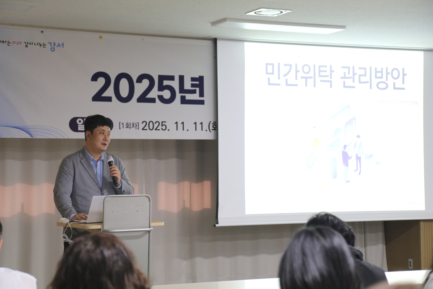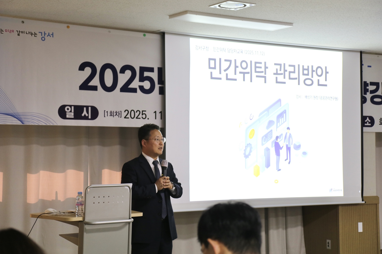 공공관리연구원은 11월 11일부터 12일까지 양일간 강서구청 민간위탁 사무 담당 공무원 및 수탁기관 회계담당자를 대상으로 ‘2025 민간위탁 관리방안 교육’을 진행했다. 이번 교육은 강서구가 운영하는 민간위탁 사무의 전문성과 투명성을 강화하고, 실무 담당자의 역량을 체계적으로 높이기 위해 마련되었으며, 공공관리연구원 배성기 원장과 강영덕 팀장이 각각 강의를 맡았다.